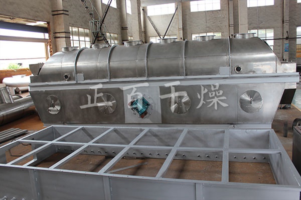 产品概述:物料自进料口进入机内,在振动力作用下,物料沿水平流化床抛掷,向前连续运动,热风向上穿过流化床同湿物料换热后,湿空气经旋风分离器除尘后由排风口排出,干燥物料由排料口排出。
