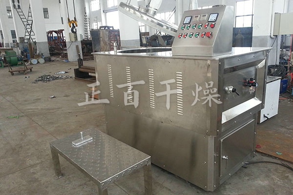 粉体物料与粘合剂在圆筒形容器中由底部混合浆充分混合成湿润软材,然后由侧置的高速粉碎桨切割成均匀的湿颗粒。